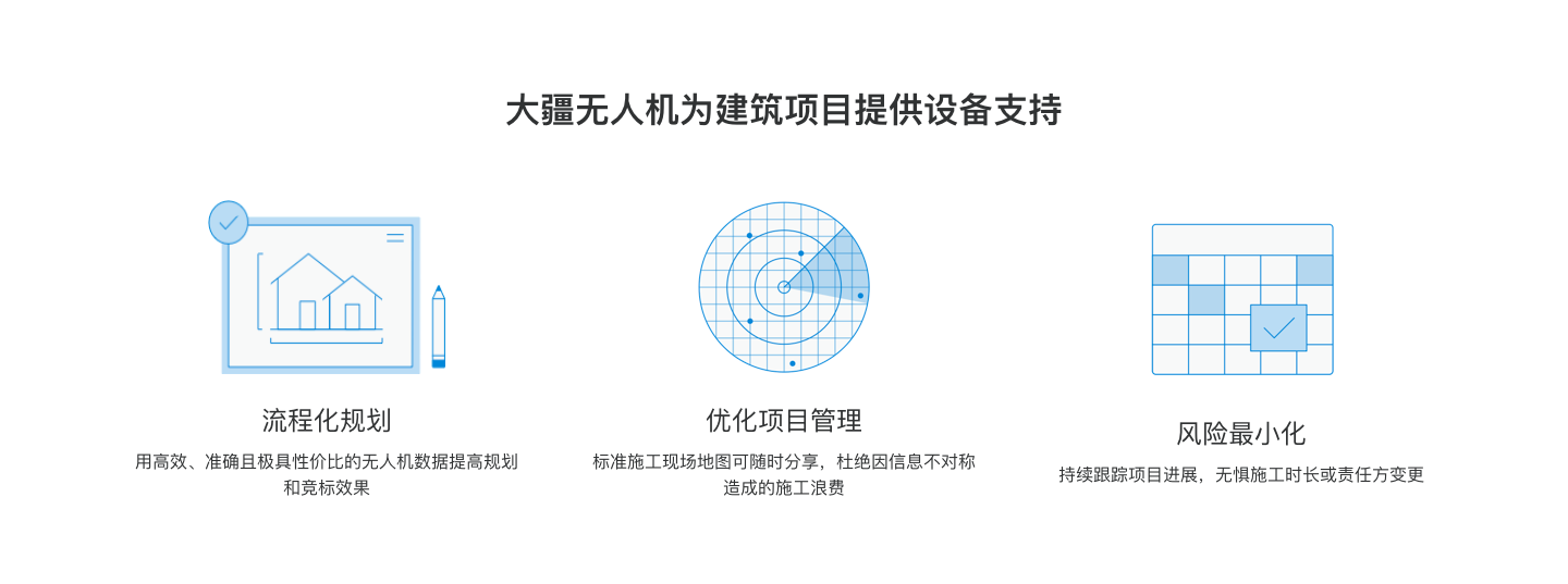 建筑项目十分复杂,需要数个承包商和数百名工人花费大量的时间和资金才能完成。无人机技术提供规范化、细节化的工地地图,为团队内部及外部利益攸关方提供可靠数据,保证项目按时进行,节省预算。