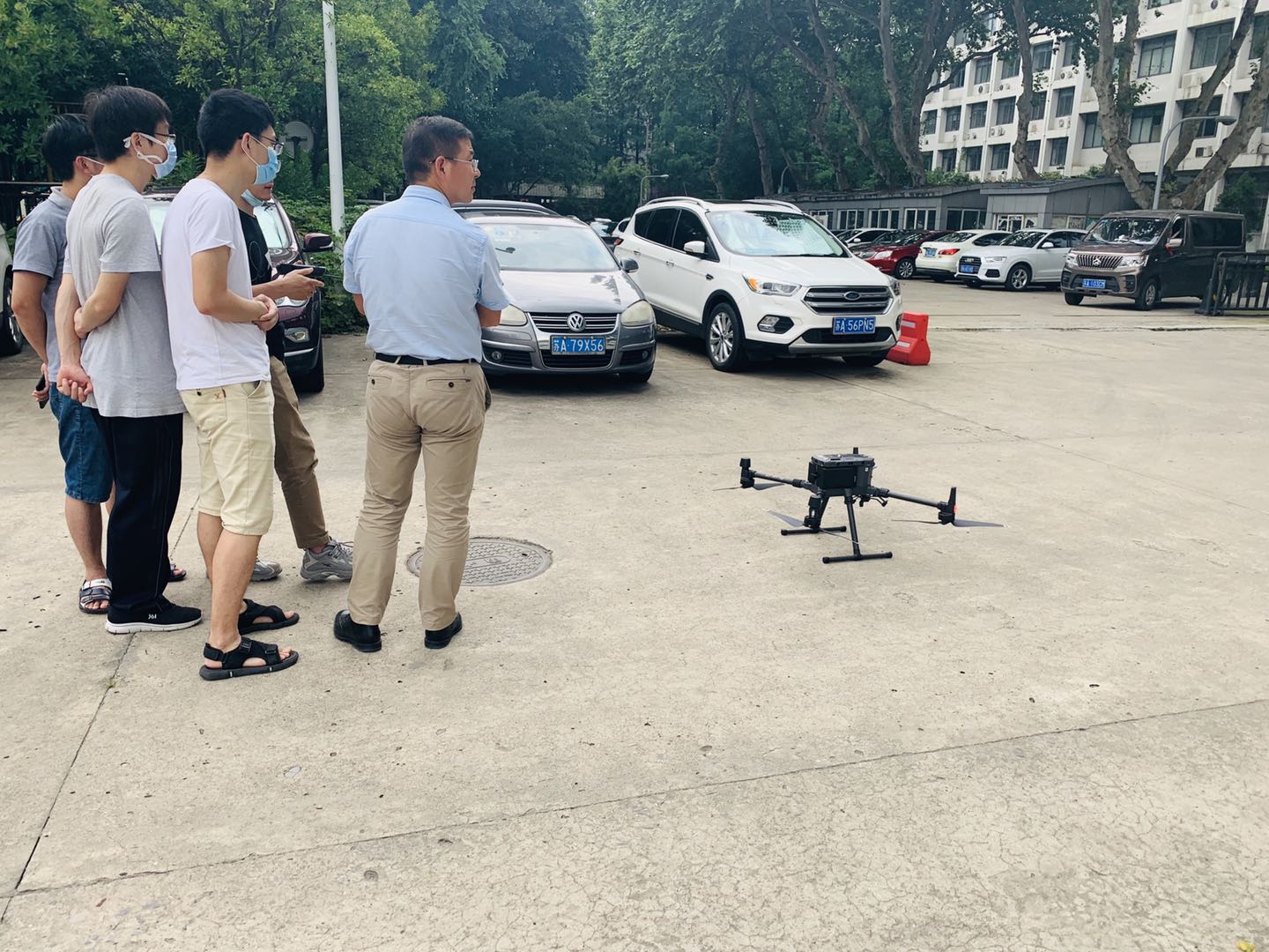 最近南京正逢梅雨季节,持续地天阴有雨,恰逢周五天晴雨停,我们石知韵智能事业部伙伴们如约赶赴去东南大学四牌楼校区交付大疆行业新标杆产品 M300 RTK.我们与老师、学生一起热烈探讨无人机技术领域的SDK开发,我们技术人员现场演示并教学大疆行业新产品,让使用人员能够高效地熟练操控无人机飞行。